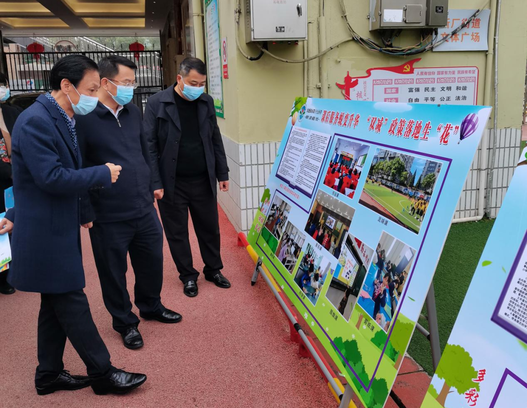 11月19日,市委常委、统战部部长吴财锋对我市“双减”工作落实情况进行专题调研。市教育局党组书记、局长冯国平,副局长陈洁,总督学温悦陪同调研。