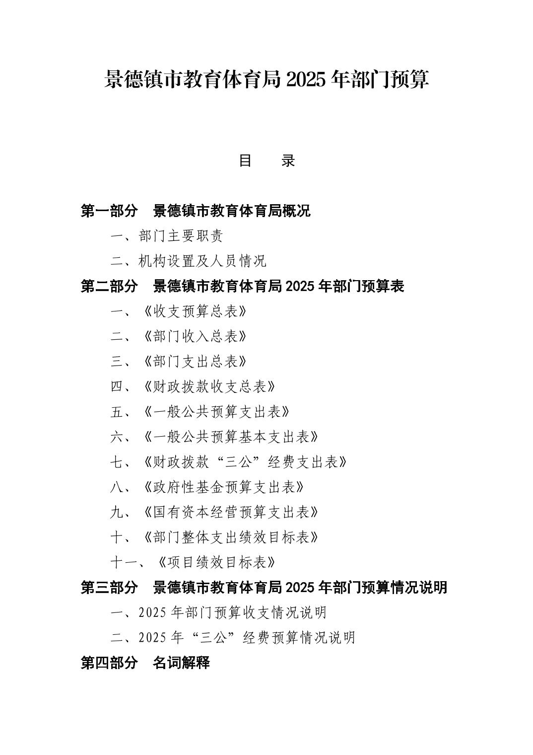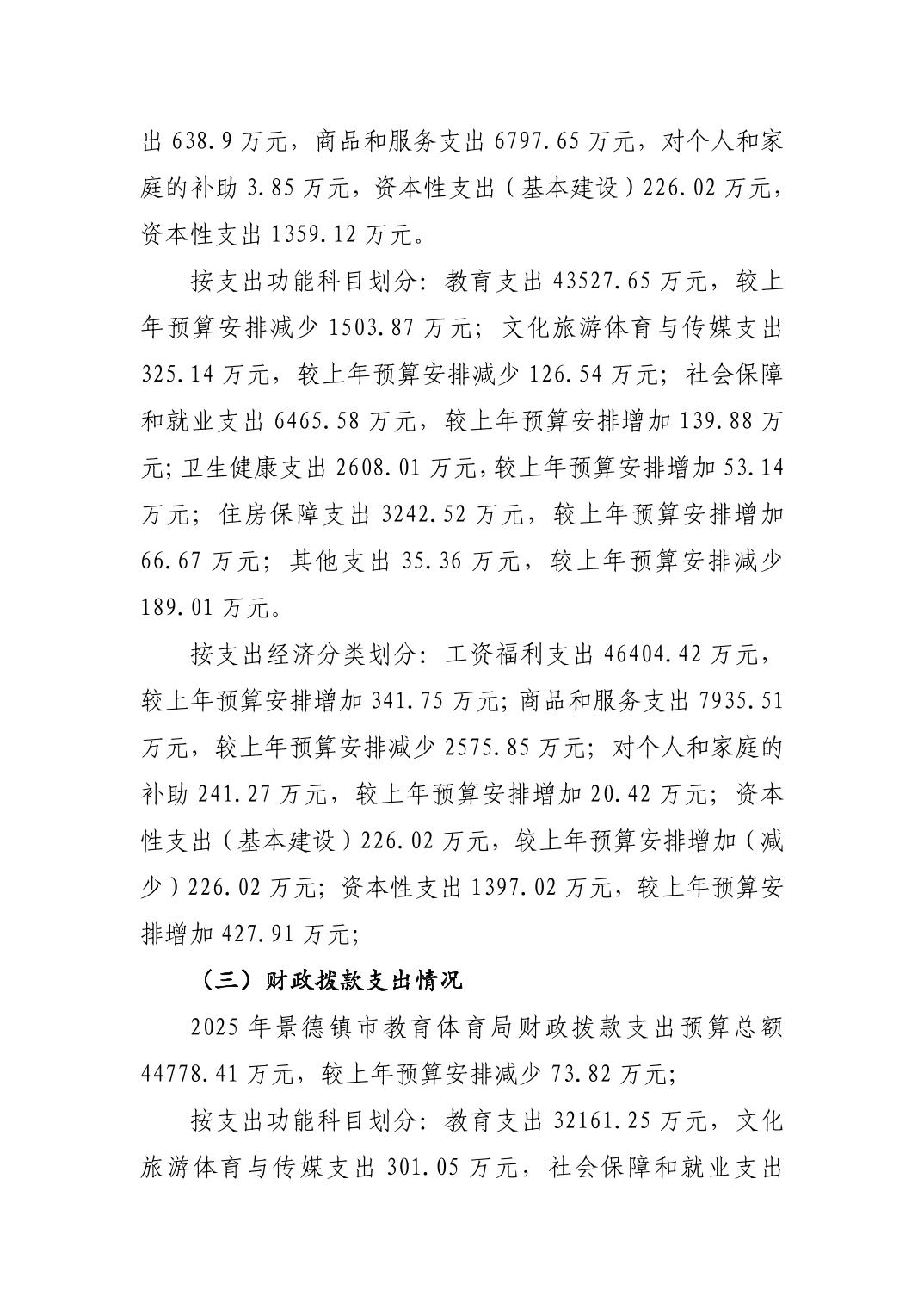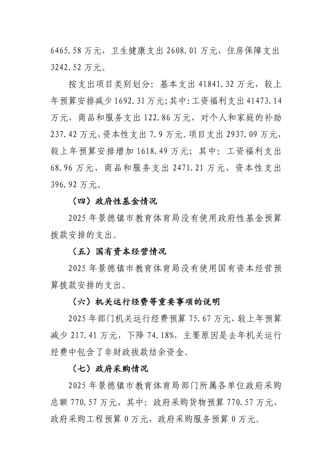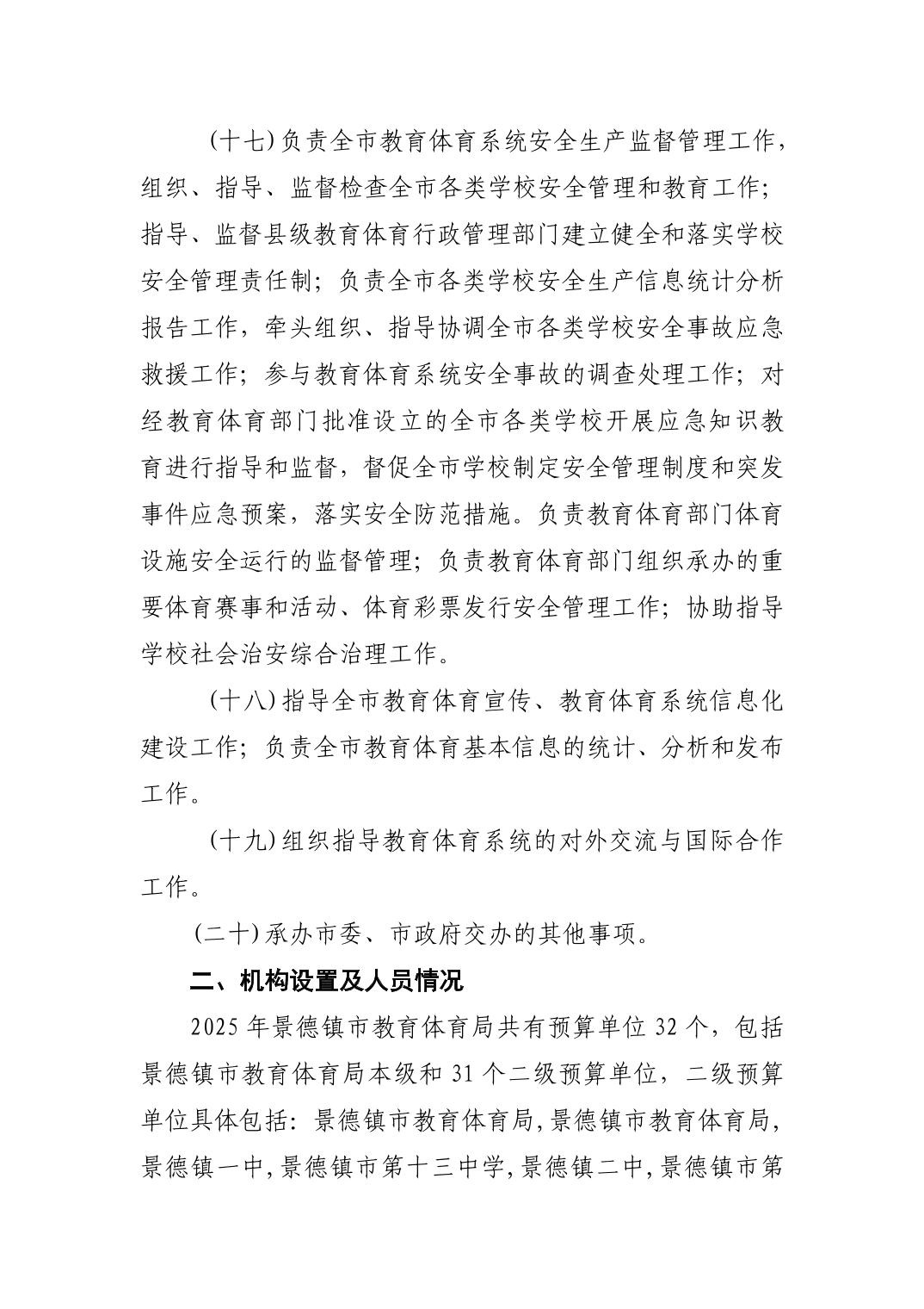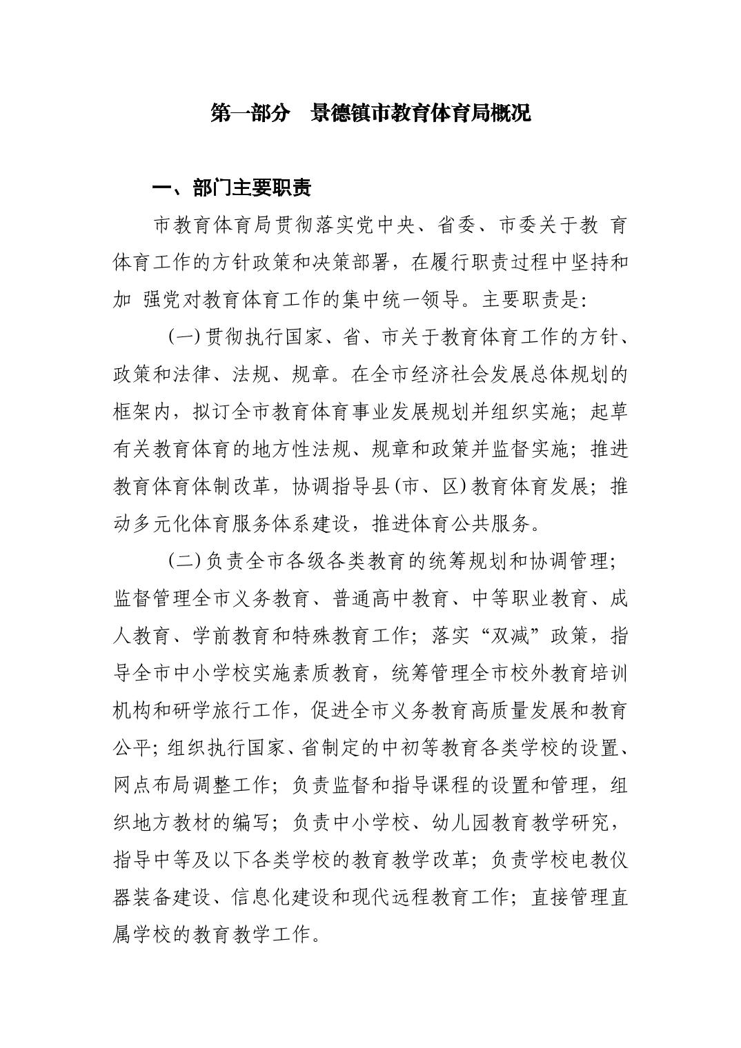 景德镇市教育体育局2025年部门预算