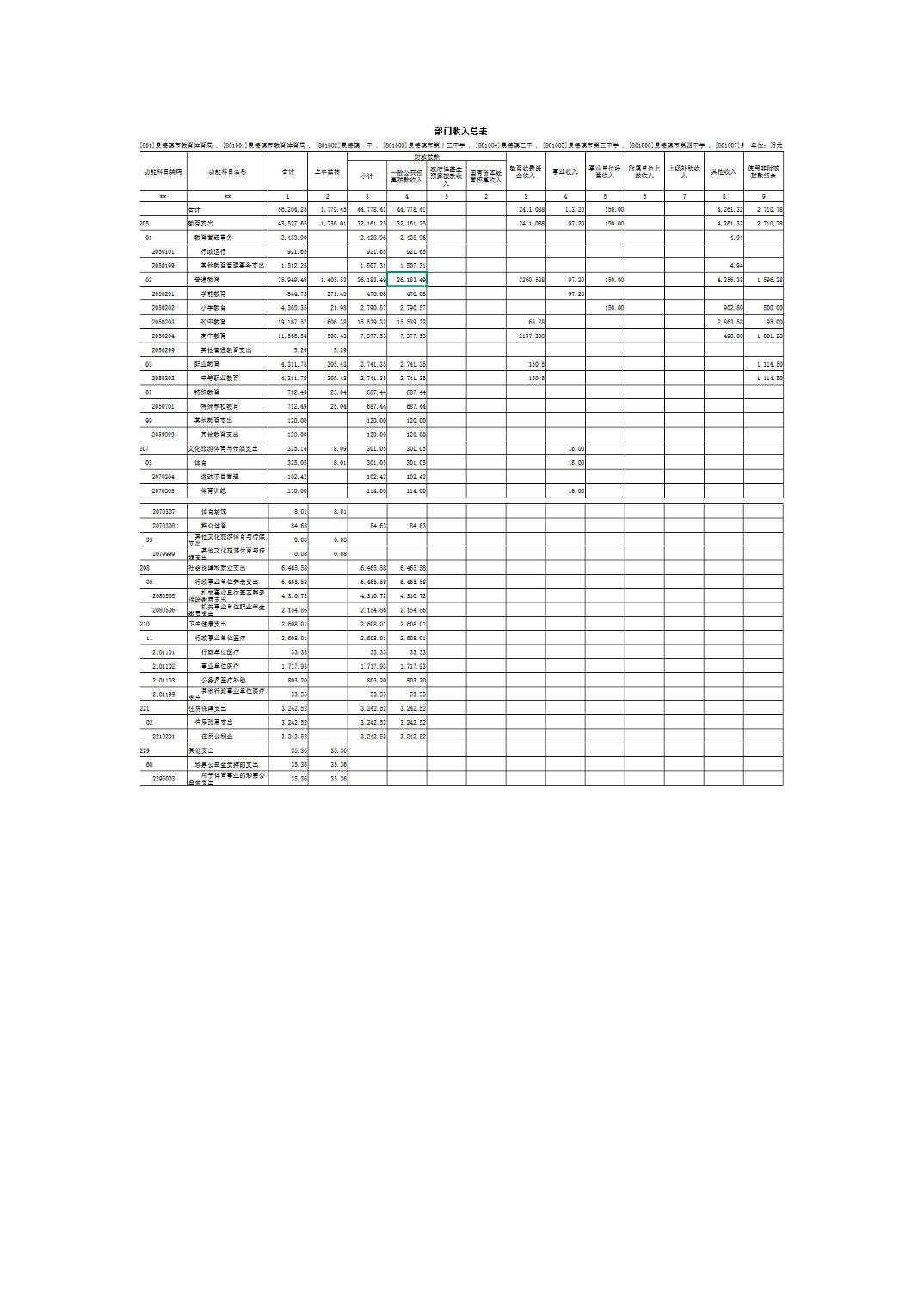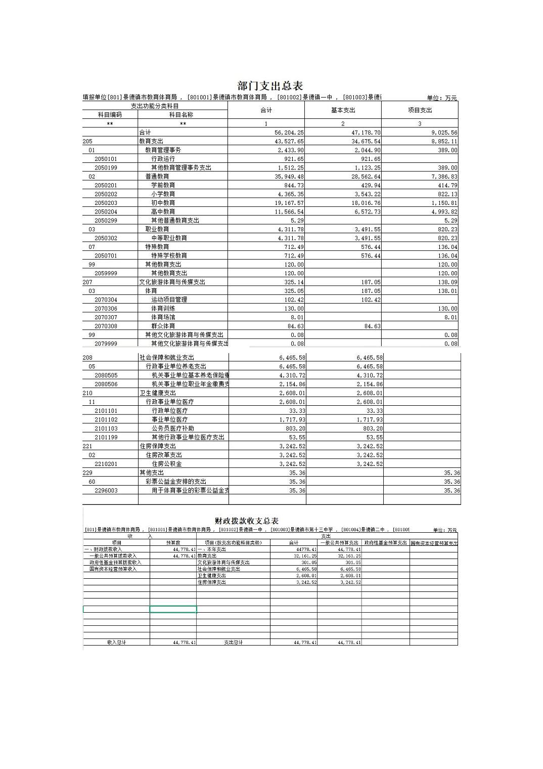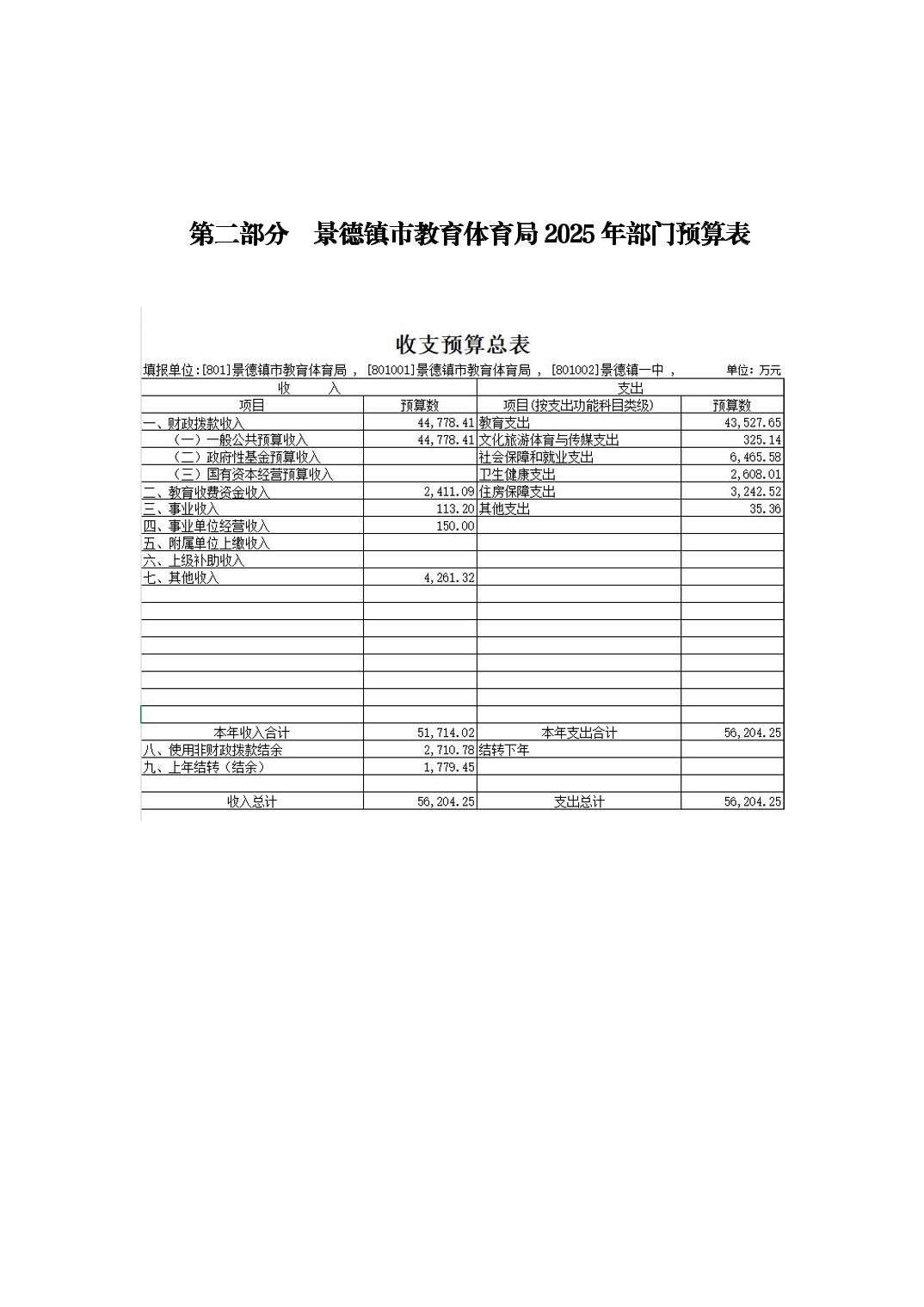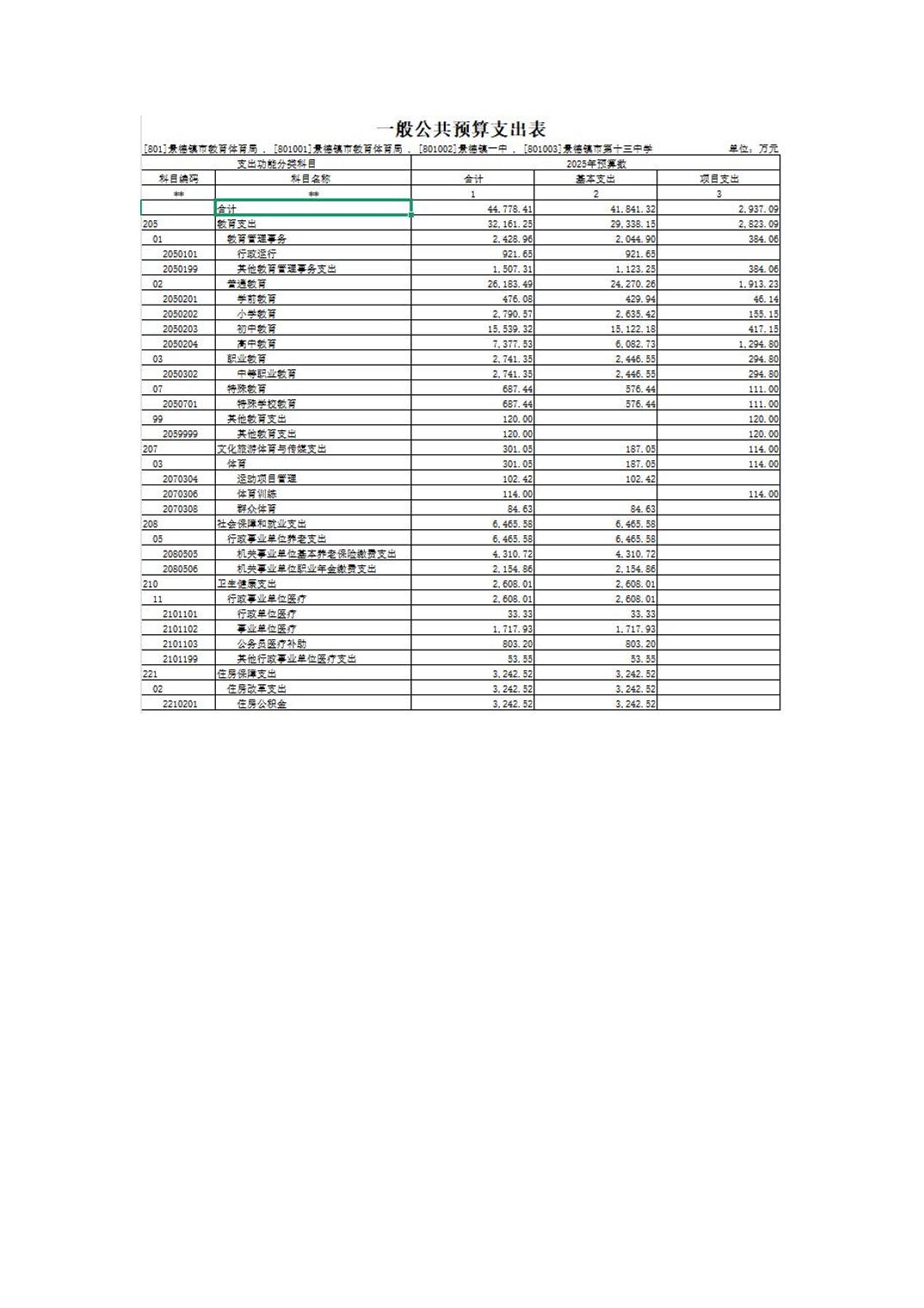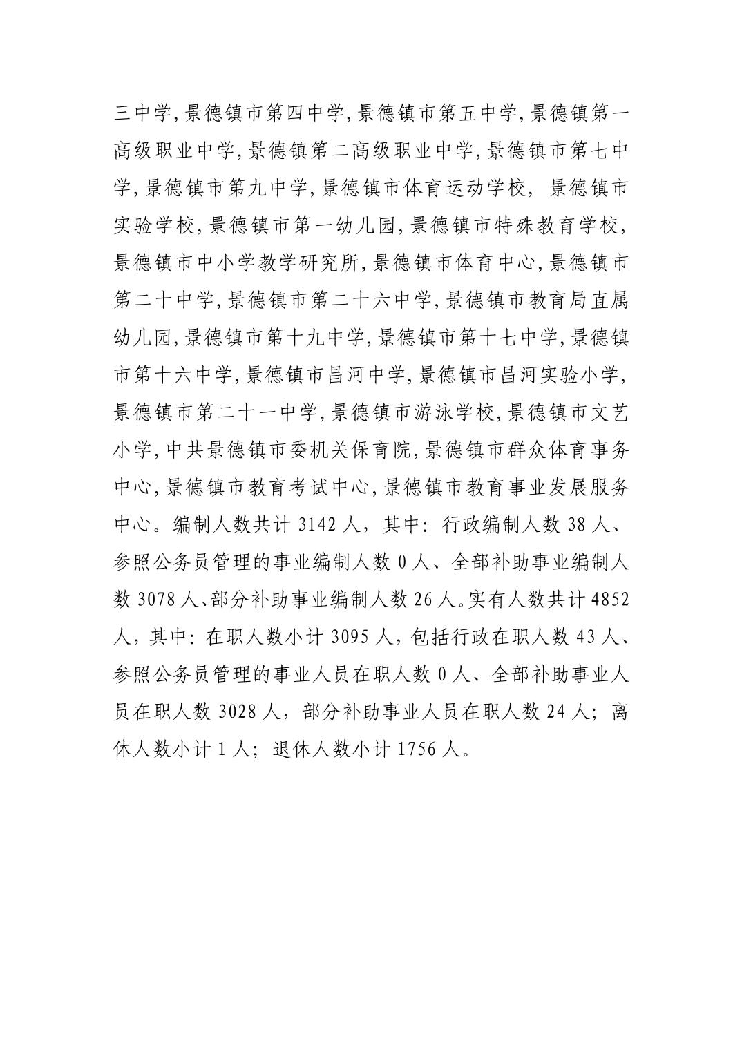 景德镇市教育体育局2025年部门预算