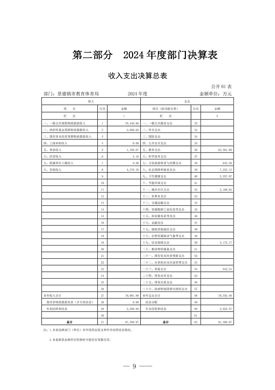 景德镇市教育体育局2024年度部门决算
