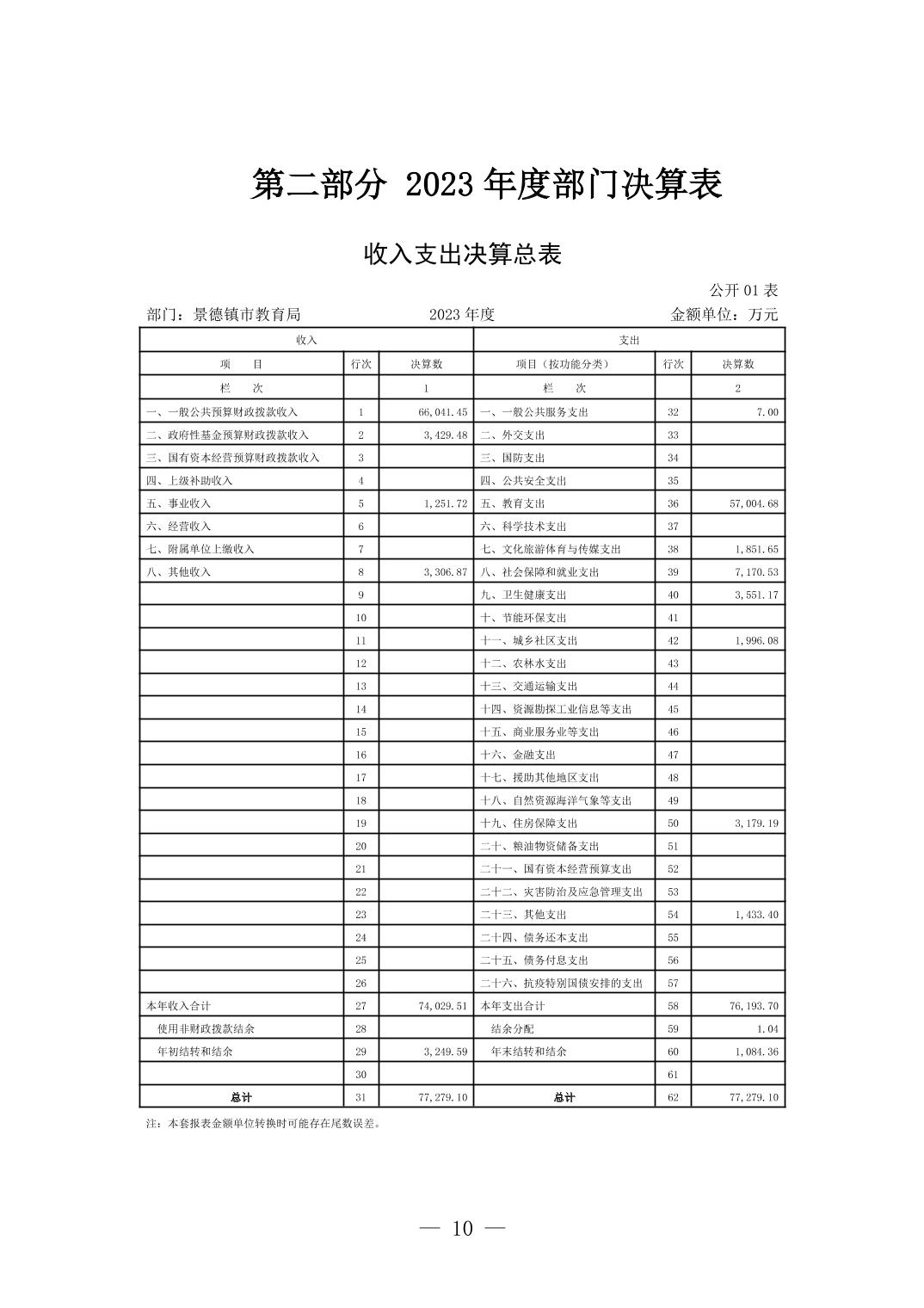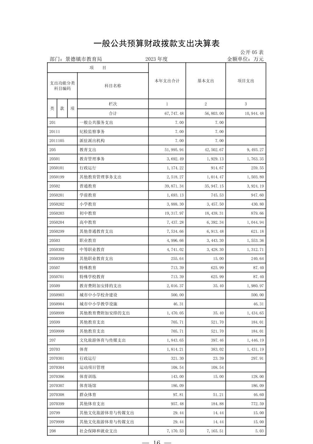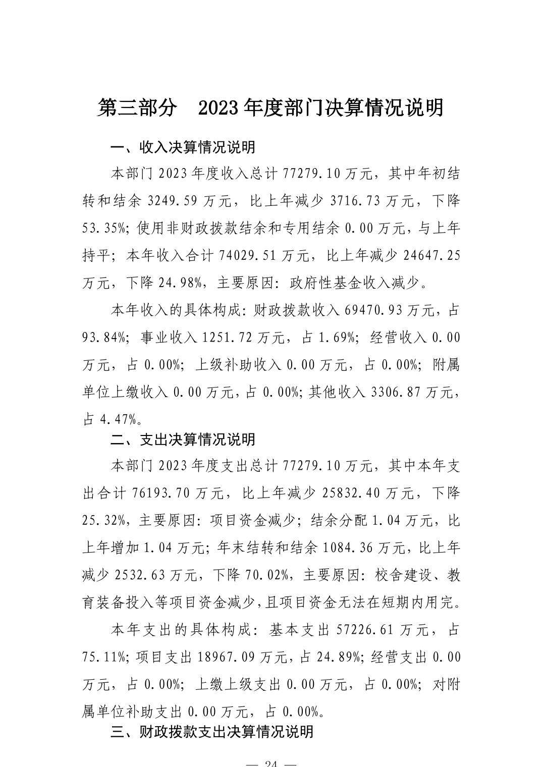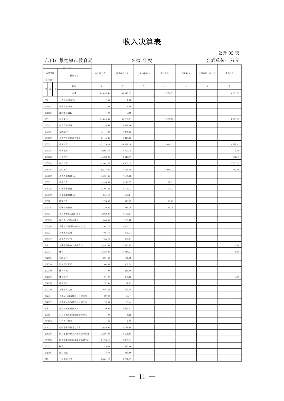 景德镇市教育局2023年度部门决算