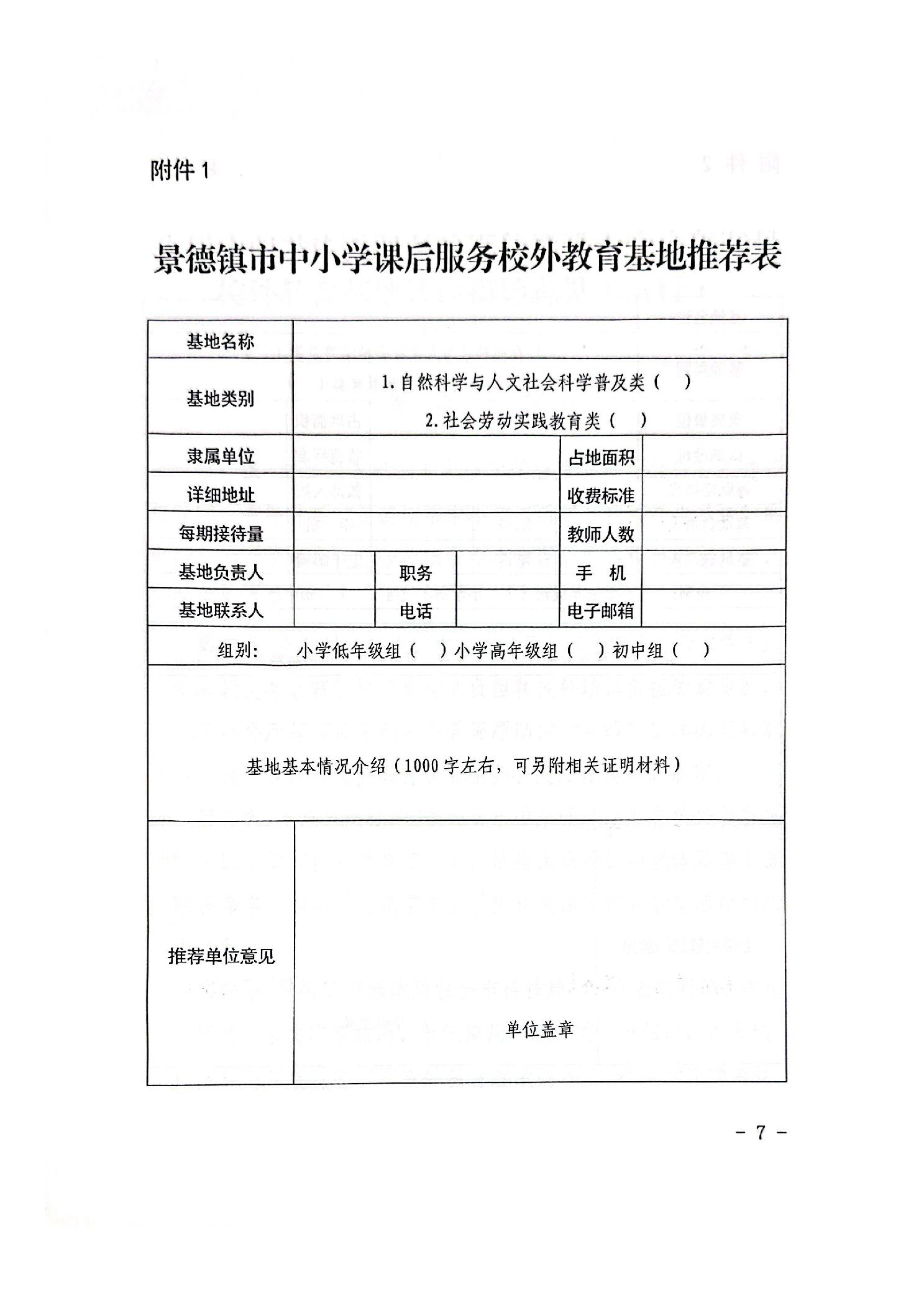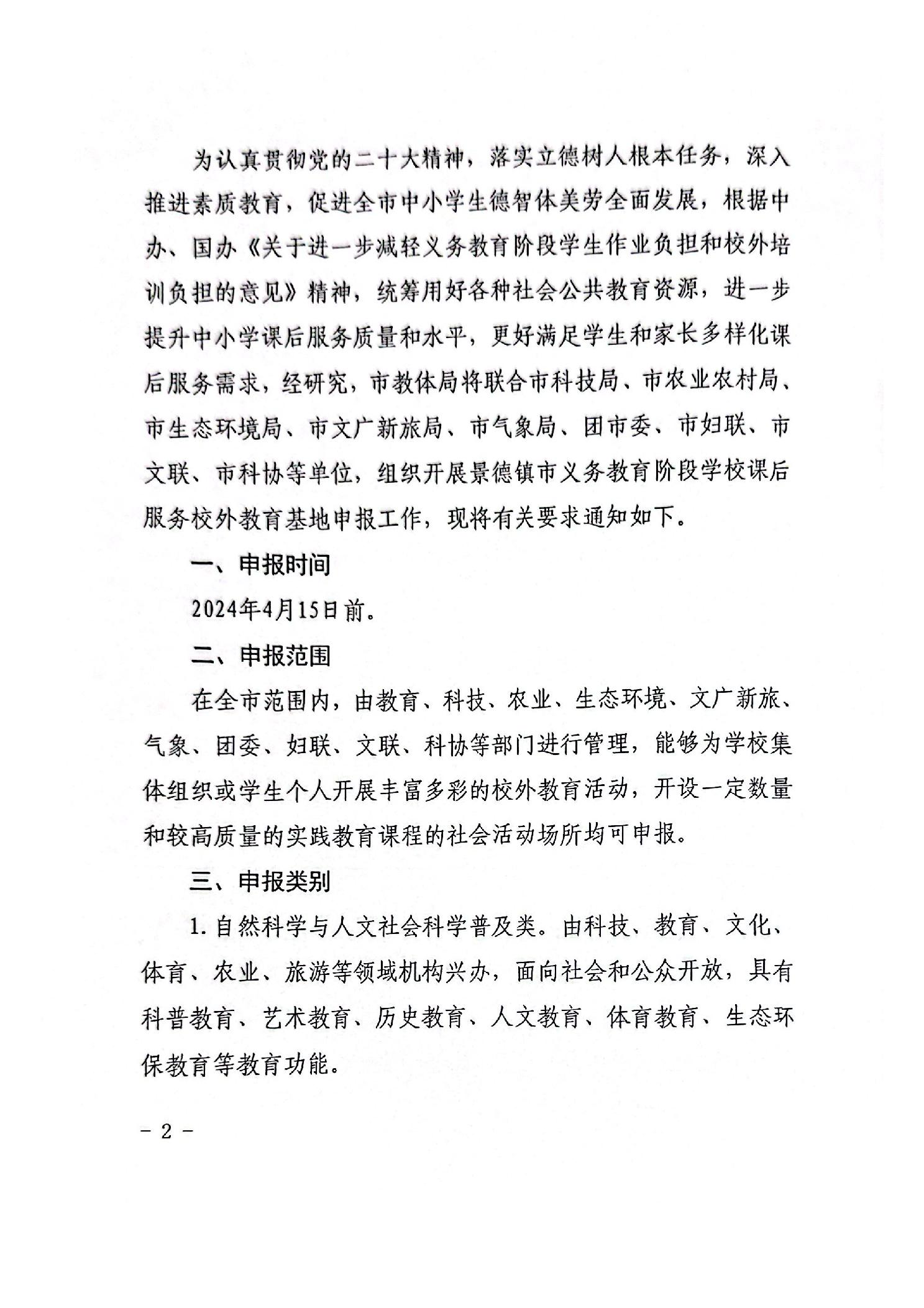 关于申报景德镇市义务教育阶段学校课后服务校外教育基地的通知
