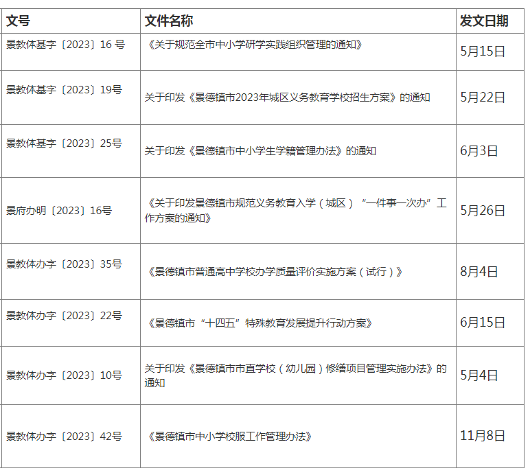 景德镇市教育体育局2023年行政规范性文件