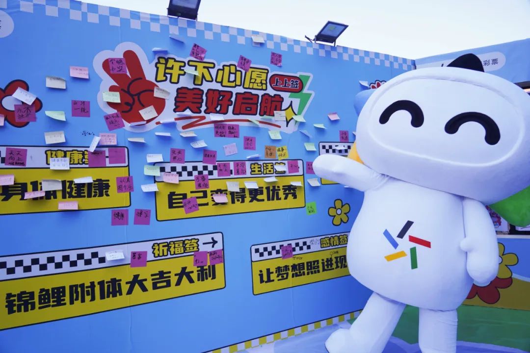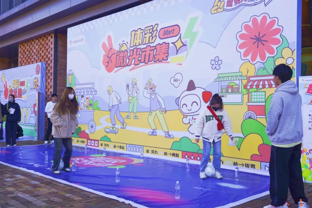 活动现场设置了好彩圈圈乐、“足”你精彩PK赛、好彩幸运池、体彩公益知识问答、许愿打卡墙等多个互动区域,市民朋友们手持“努力创造美好”集章卡,在市集内游玩互动、打卡集章。