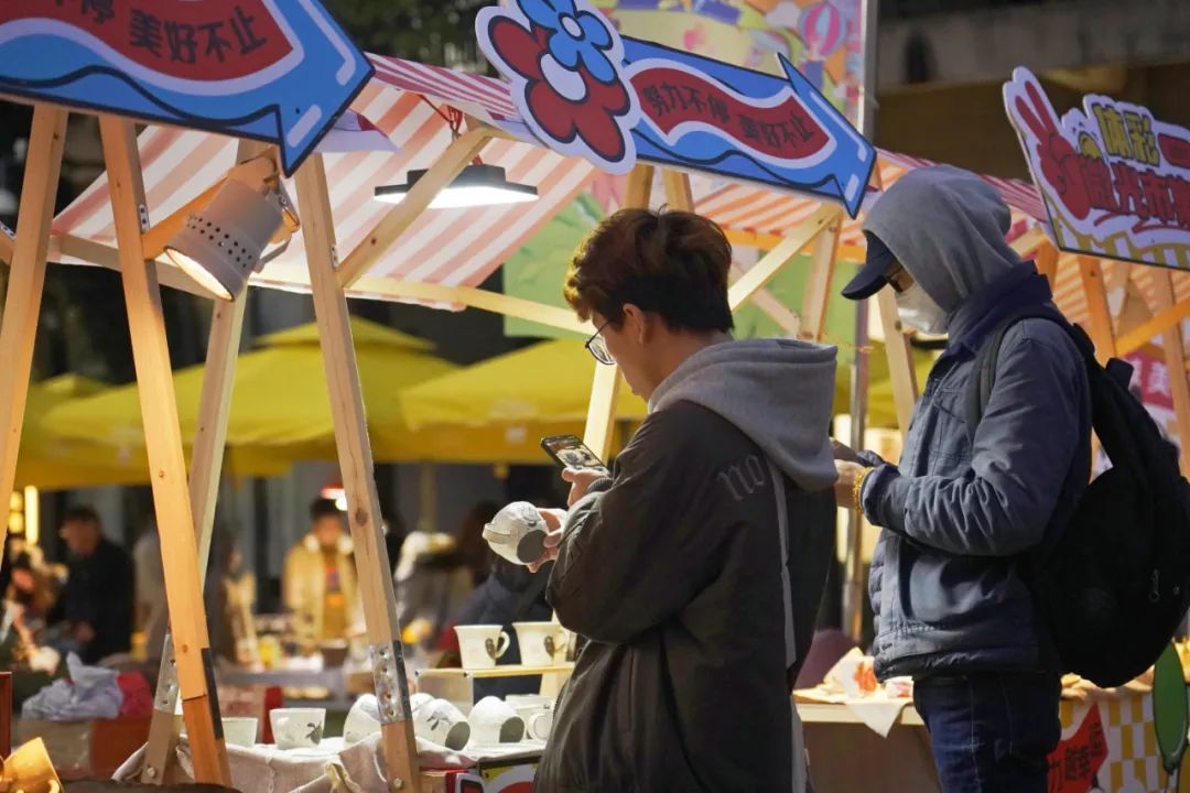 “市集也是展示陶瓷文化的窗口,我把在学校研学、制作的陶瓷作品带来了这次市集摆摊”,景德镇陶瓷大学的王文亮同学受本次活动招募,在微光市集里摆起了特色摊位、展售创意手作,他也向感兴趣的游客介绍着景德镇陶瓷文化,“感谢江西体彩给我这次参与微光市集摆摊的机会,我今天收入的一部分也会用来支持公益事业。”