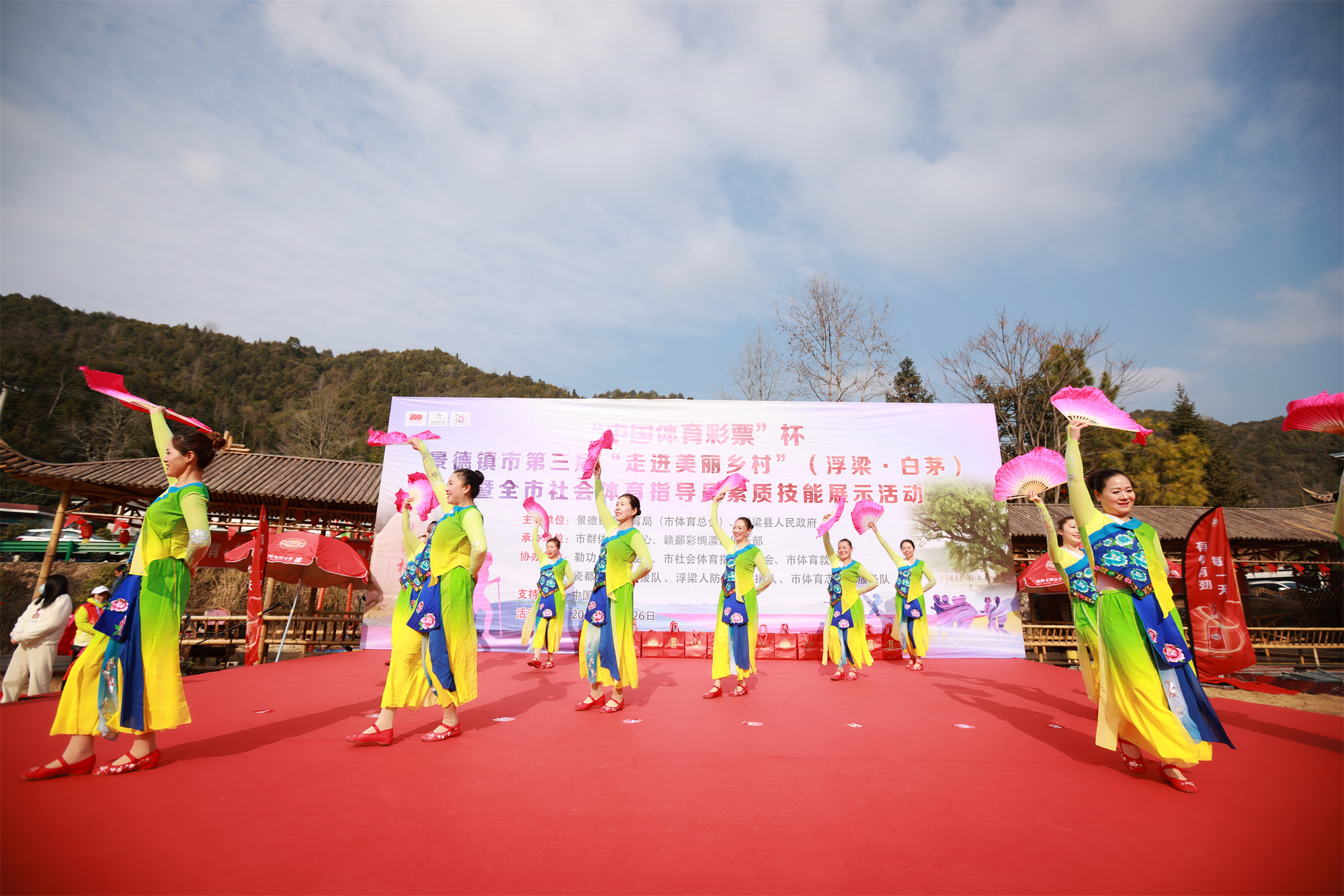 12月26日,“中国体育彩票杯”景德镇市第三届“走进美丽乡村”(浮梁·白茅)暨全市社会体育指导员素质技能展示活动在美丽的浮梁县白茅村举行。全市市直机关单位、各体育协会俱乐部的体育爱好者以及全市社会体育指导员代表,体育志愿服务、体育救援等600余人参加。市委政法委常务副书记王毅宣布开幕,市体育局党组书记何明旺、副局长孙俊,浮梁县教体局、浮梁县勒功乡等相关负责人出席开幕式。