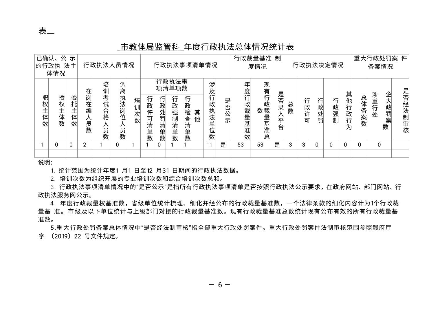 市教体局2022年度执法统计年报