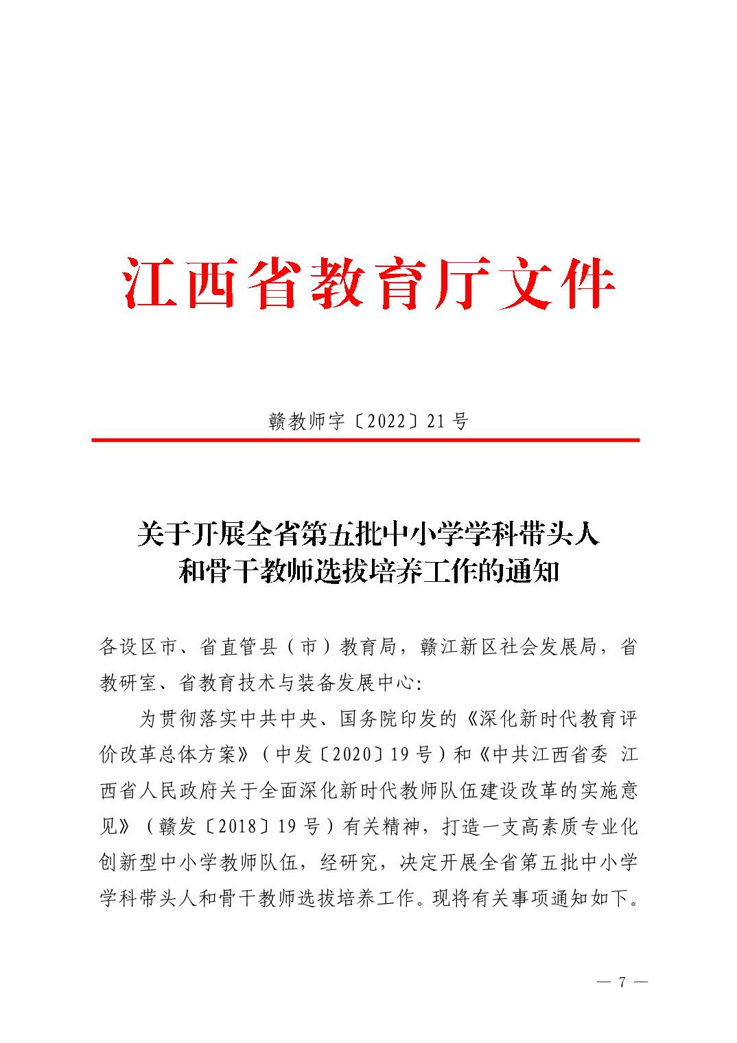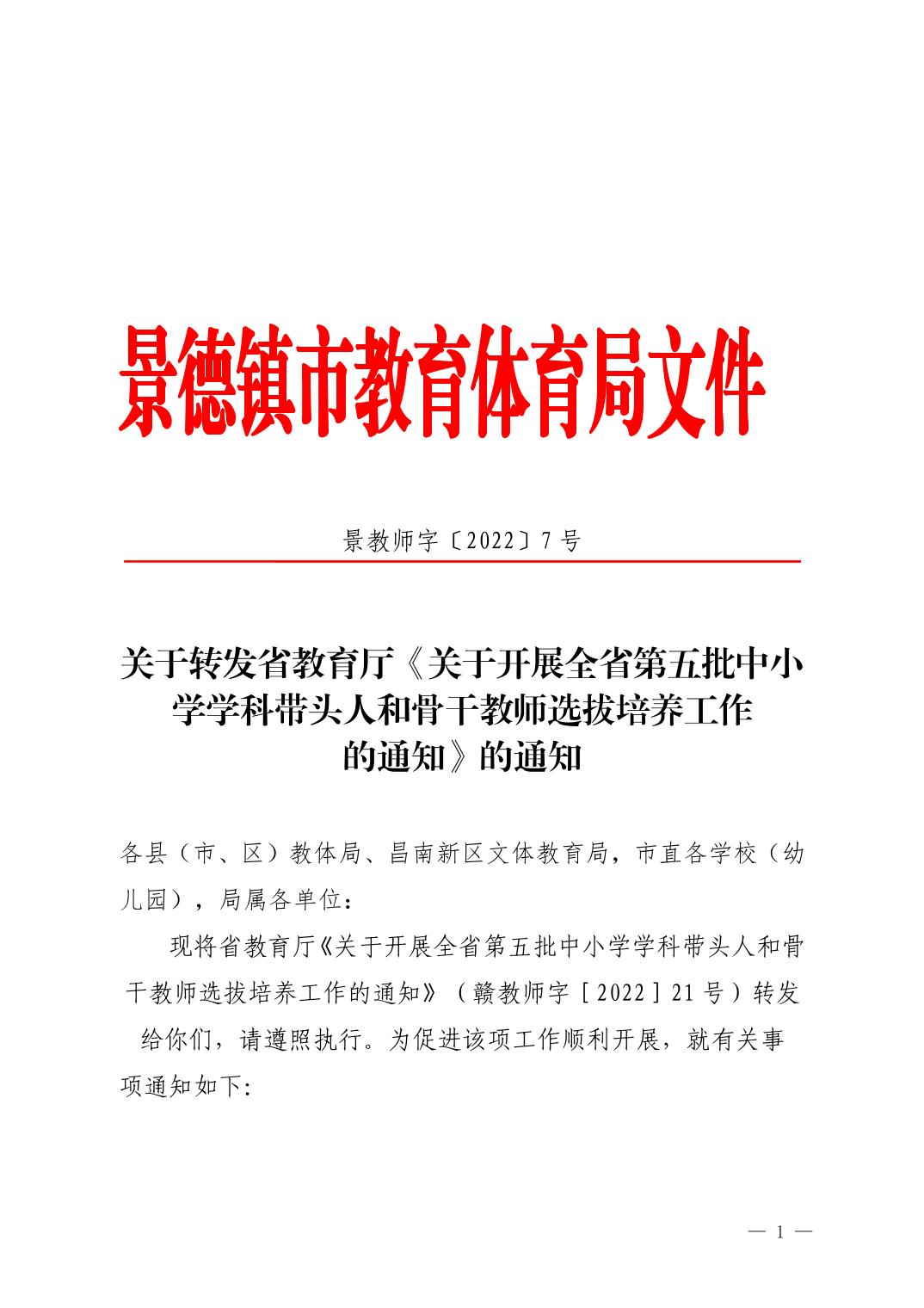 关于转发省教育厅《关于开展全省第五批中小学科带头人和骨干教师选拔培养工作的通知》的通知