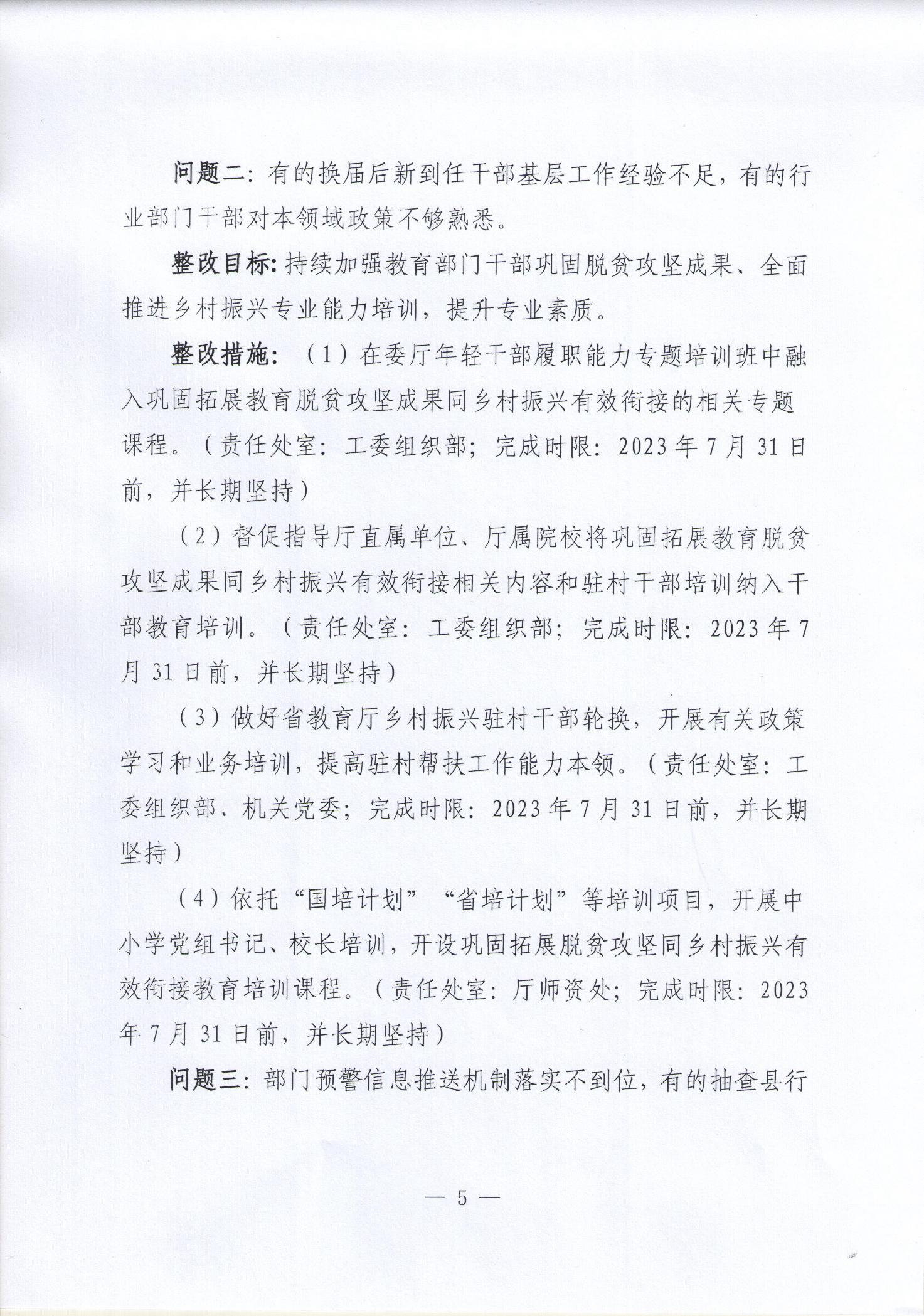 省教育厅 2022年度巩固拓展脱贫攻坚成果同乡村振兴有效衔接国家考核反馈问题和省考发现问题整改工作方案