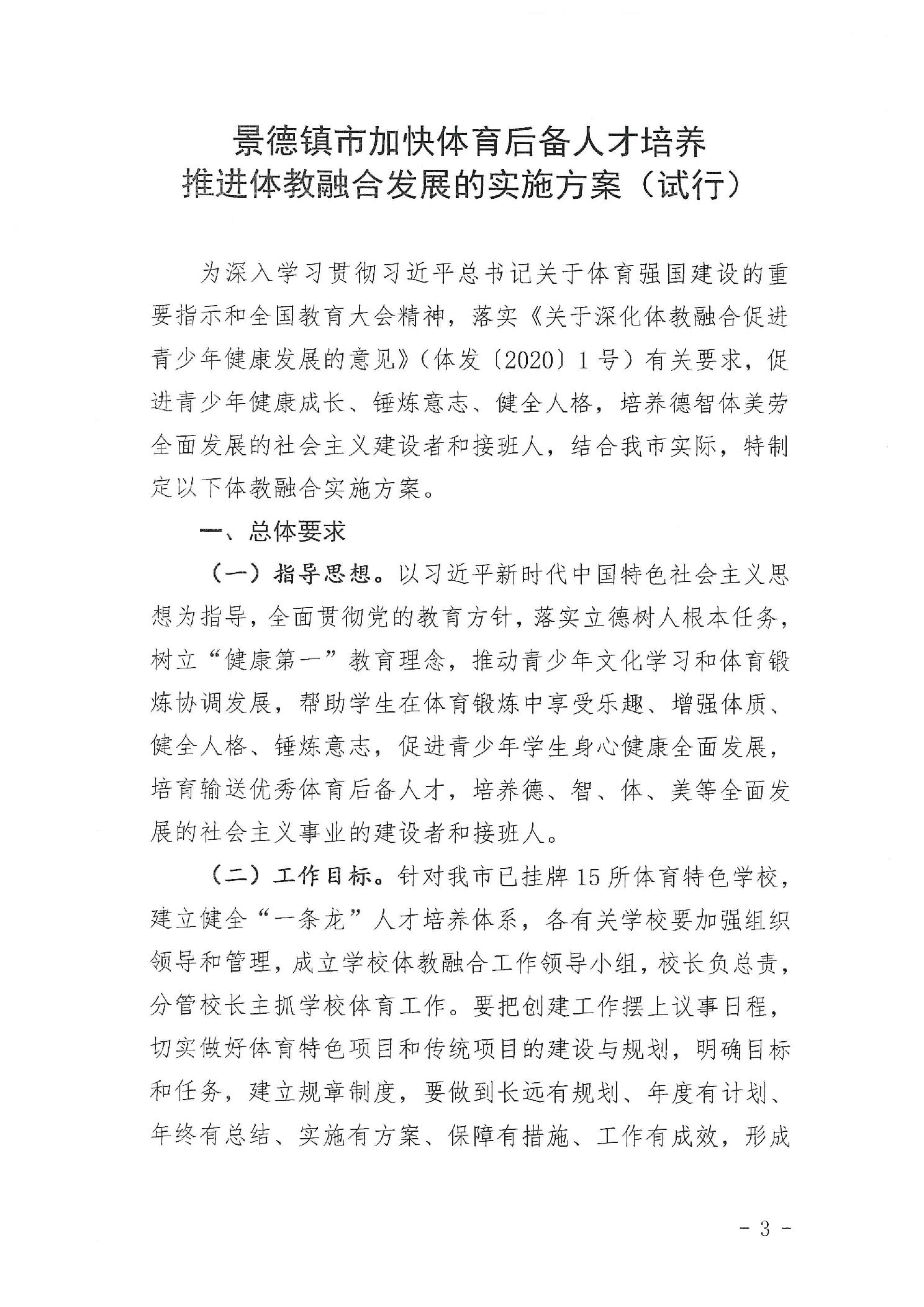 景德镇市加快体育后备人才培养推进体教融合发展的实施方案