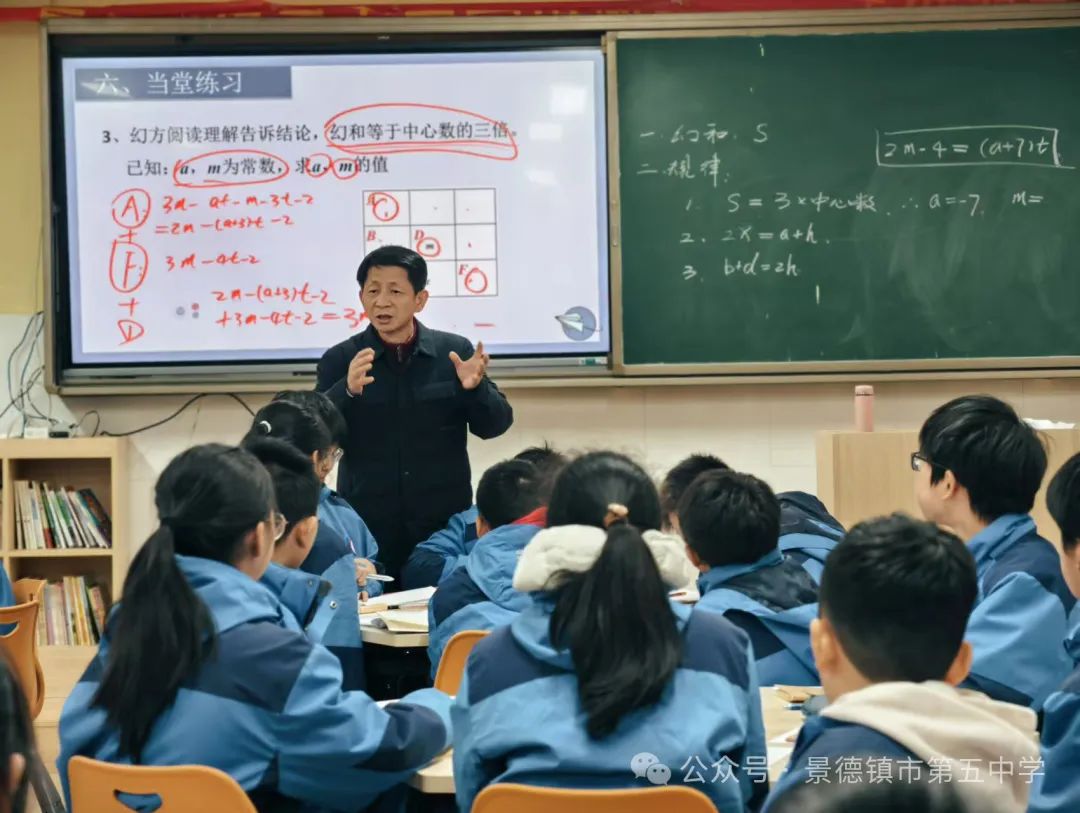 学生在层层递进的教学过程中,推断出了三阶幻方的规律。随后,拓展思维维度,进一步推断出五阶幻方、七阶幻方……的规律,不断让同学们体会到数字的奥妙,让复杂的幻方问题在找到规律后变得简单有趣,让同学们有想继续挑战下去的欲望。随后教学进入抢答环节,巢勇采用小组合作学习的方式,在充满乐趣和挑战的学习环境中,学生们兴趣高涨,积极参与,抢答过程异常激烈,学生们思路清晰,分析问题有理有据。教学过程环环相扣,紧密相连,抢答环节后,教学进入你出题我来答环节。学生个个跃跃欲试,兴趣高涨,课堂气氛十分活跃,把整个课堂进一步推入高潮。