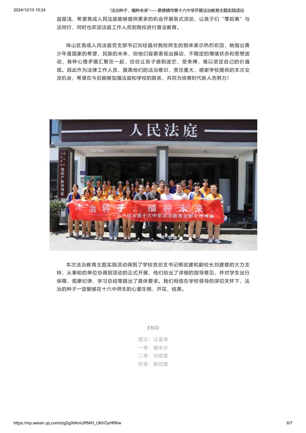 “法治种子,播种未来”——景德镇市第十六中学开展法治教育主题实践活动