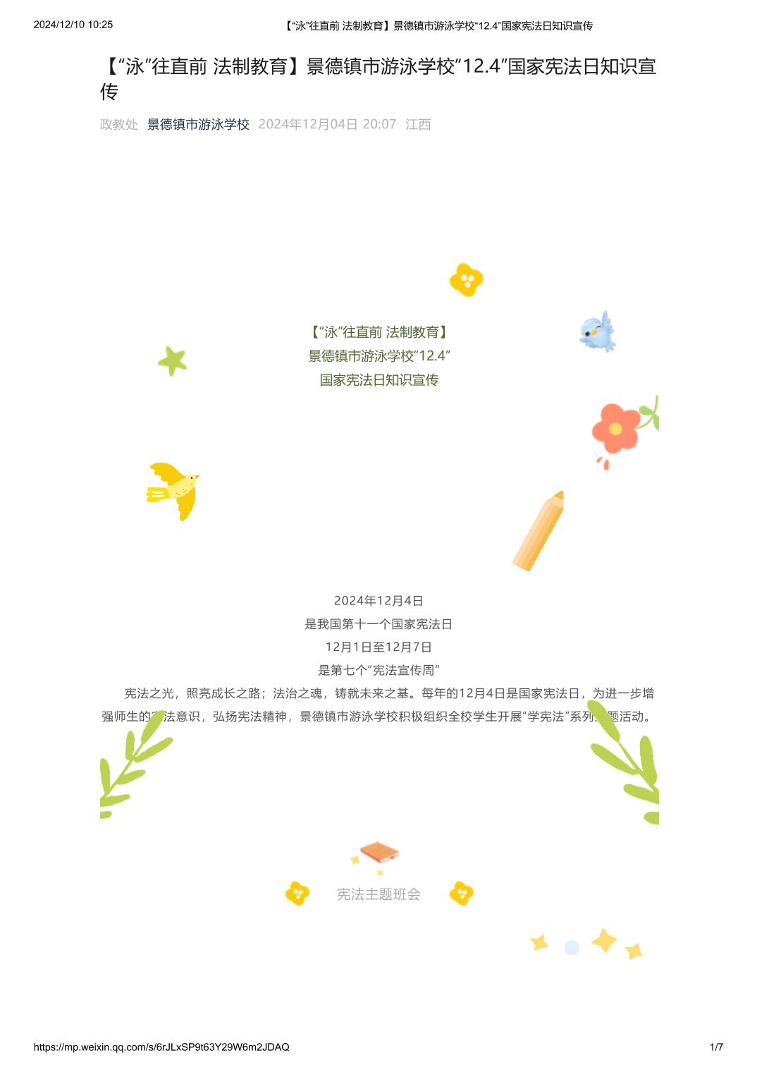 【“泳”往直前 法制教育】景德镇市游泳学校“12·4”国家宪法日知识宣传
