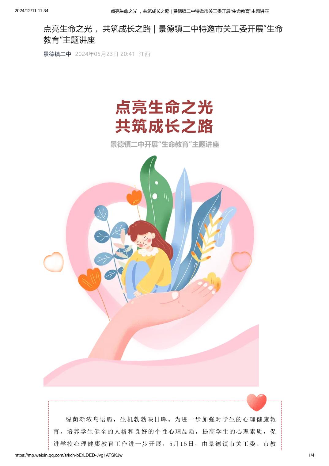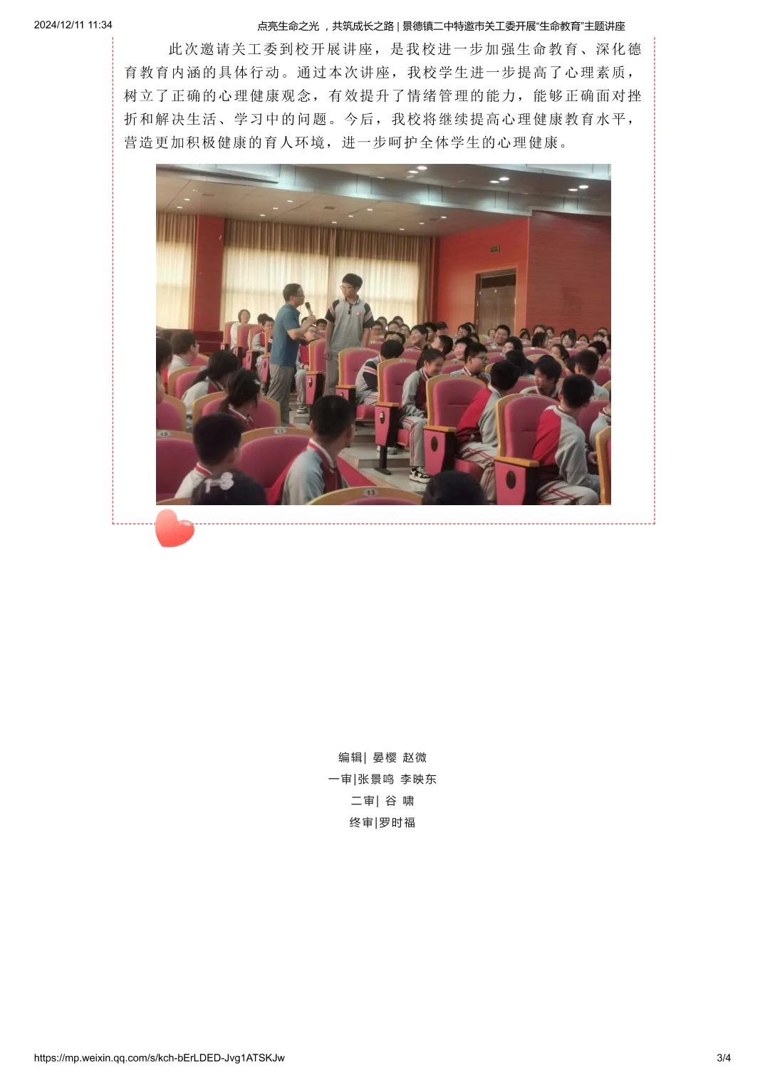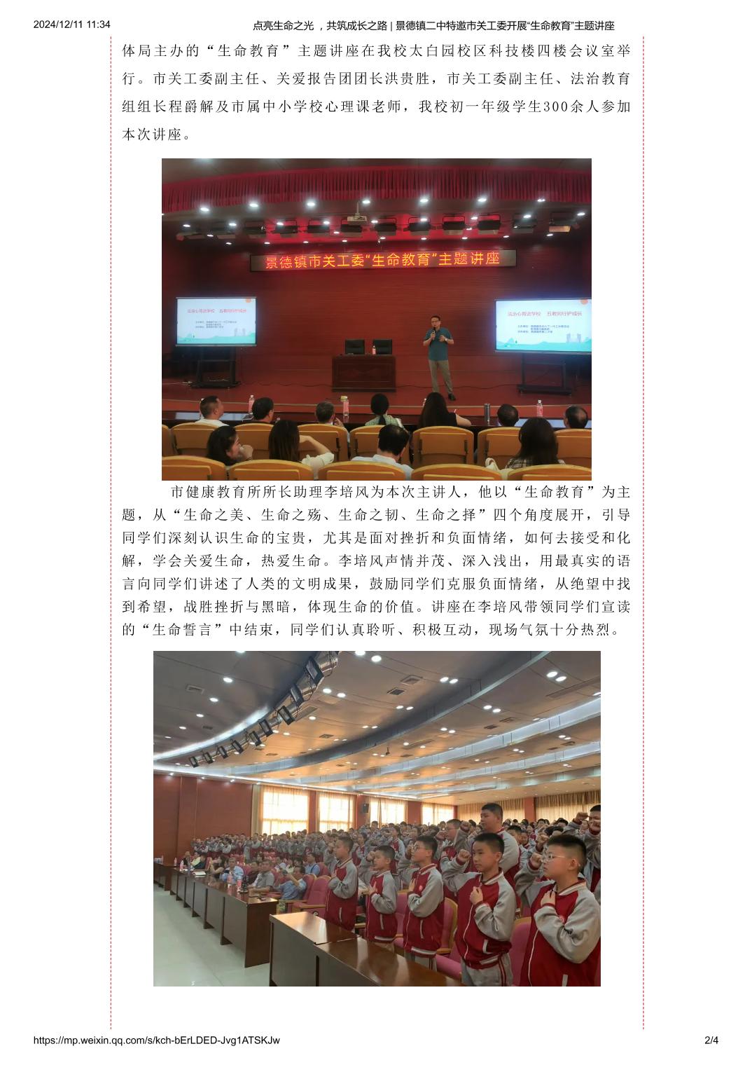 点亮生命之光 ,共筑成长之路 ——景德镇二中特邀市关工委开展“生命教育”主题讲座