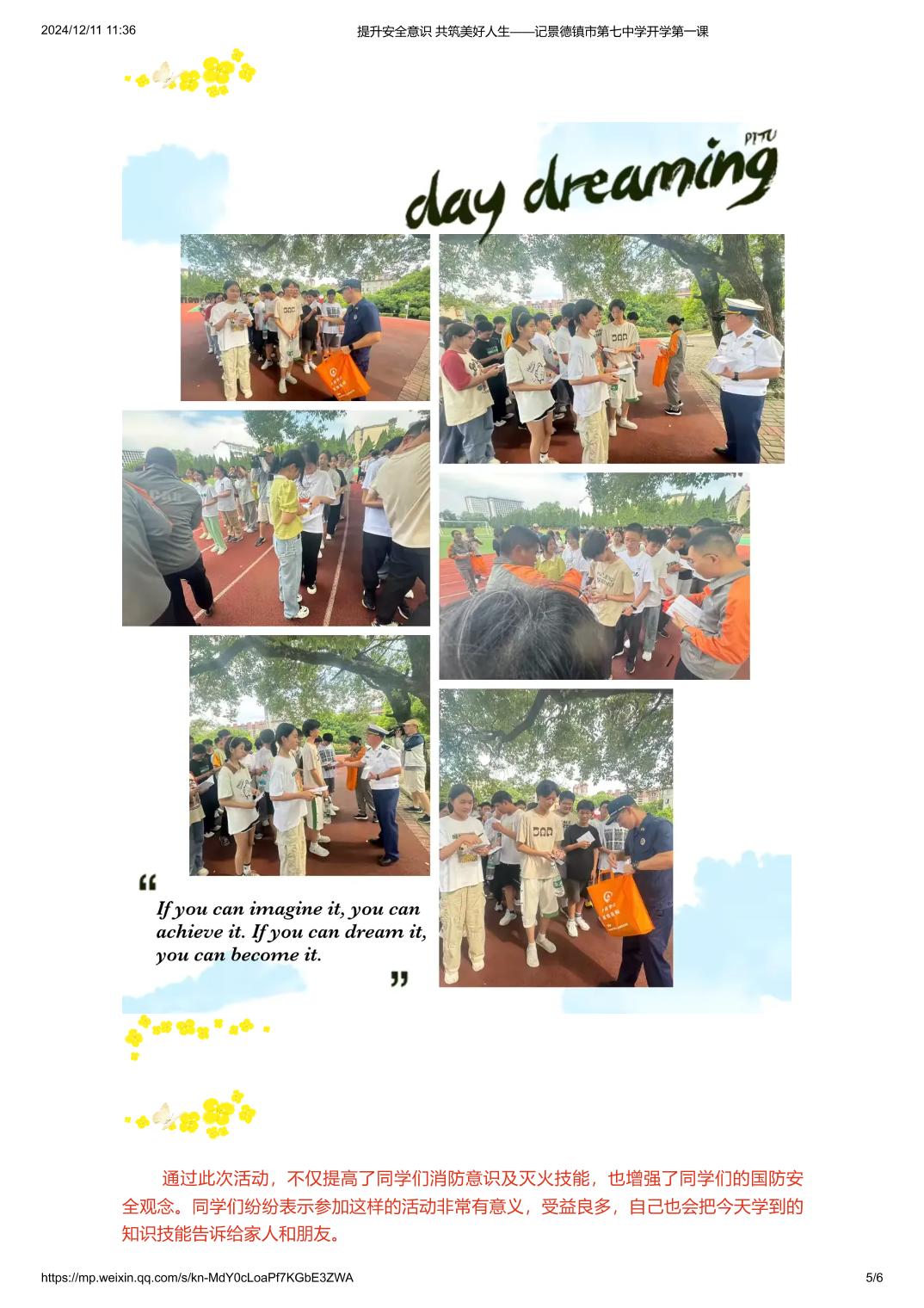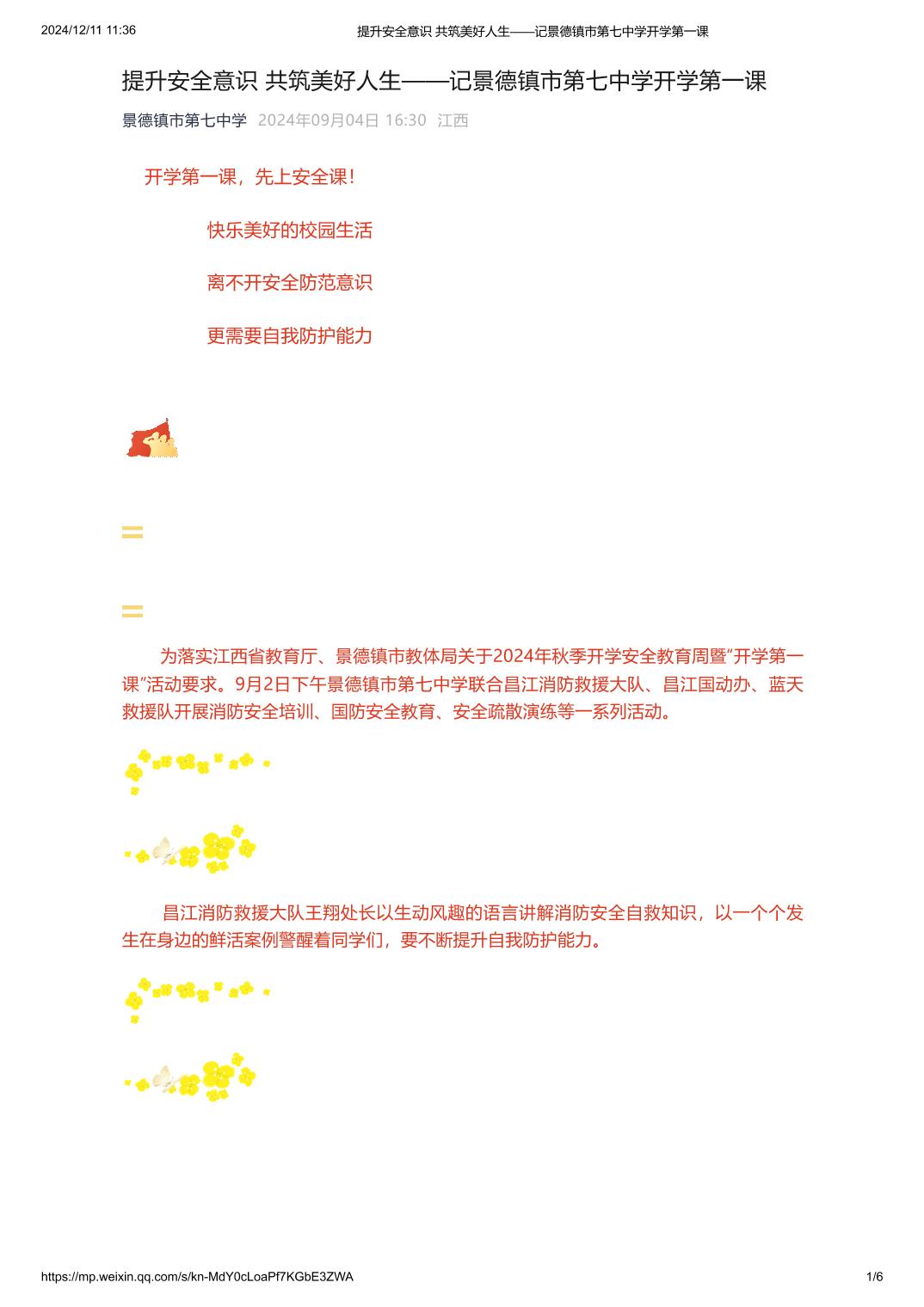 提升安全意识 共筑美好人生——记景德镇市第七中学开学第一课