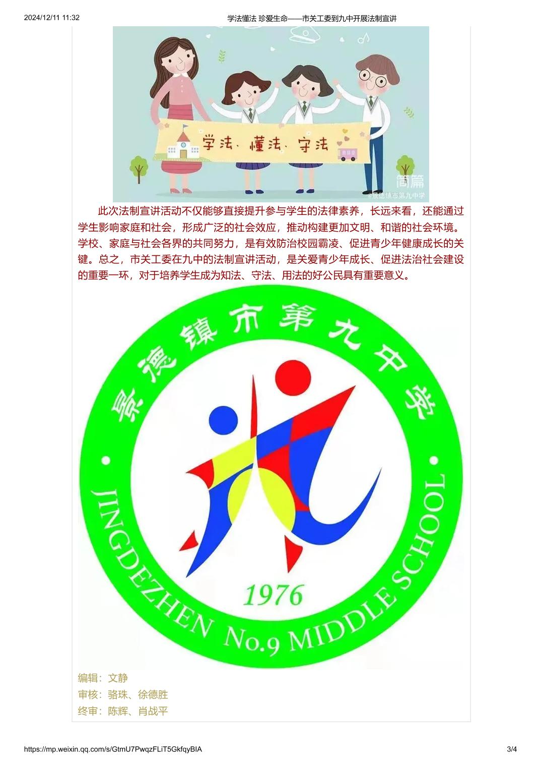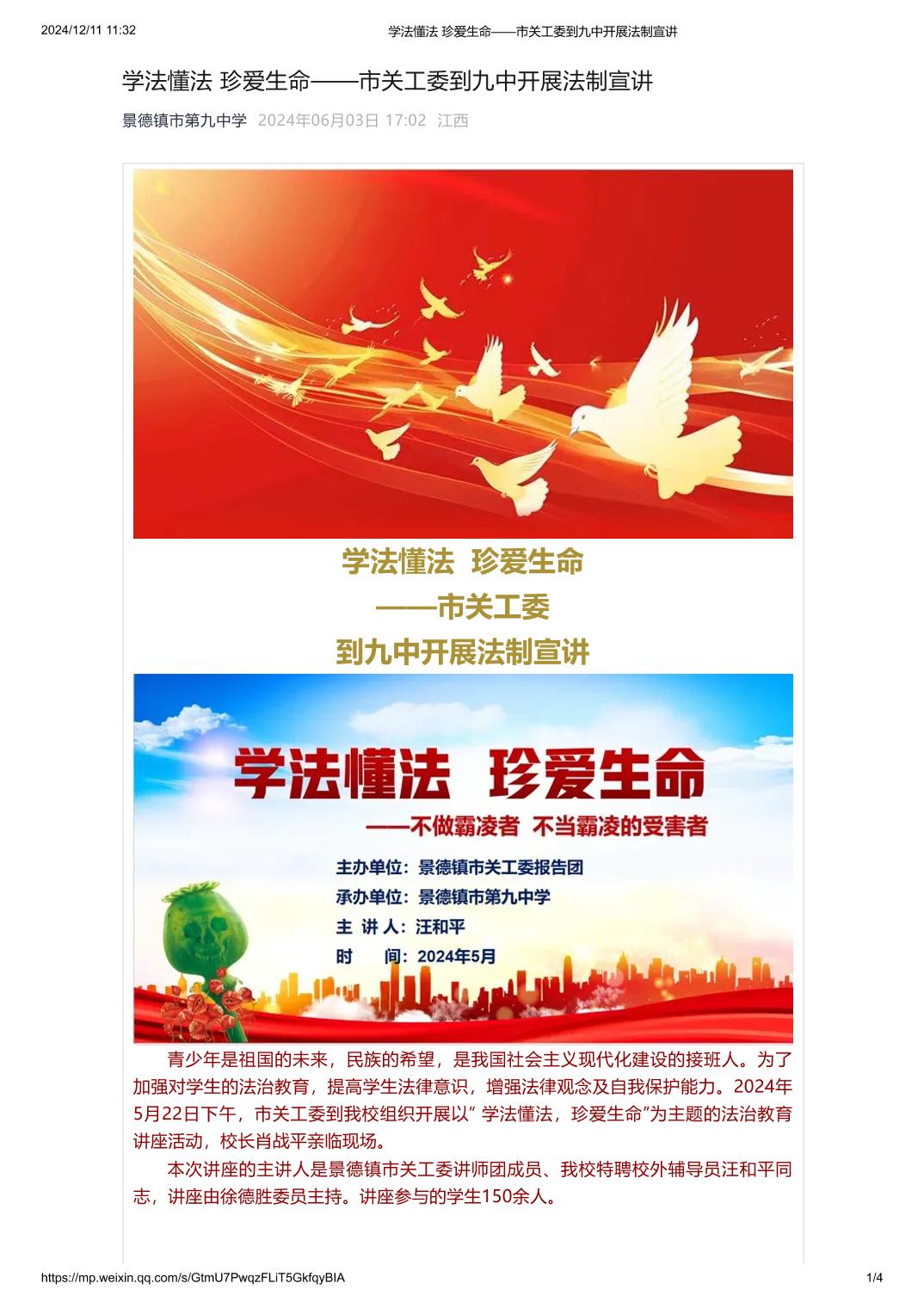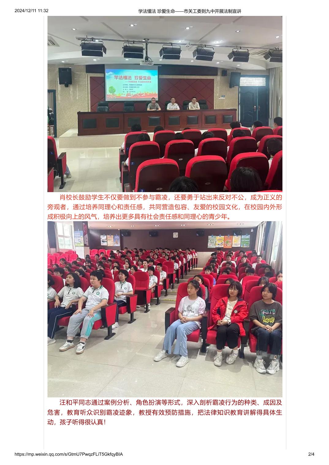 学法懂法 珍爱生命——市关工委到九中开展法制宣讲